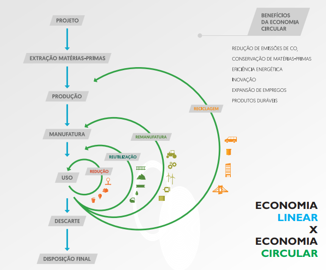 Economia Linear é a prática de 'extrair-produzir-descartar'. Neste sistema. O crescimento econômico depende do consumo de recursos finitos, o que traz o risco iminente de esgotamento de matérias-primas.